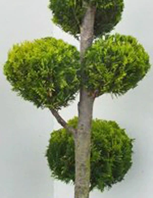 Die Säulenzypresse Ivonne mit ihren Multikugeln, ist schon ein ganz besonderes Formgehölz.Die unregelmäßig um den Stamm herum angeordneten Kugel ziehen sofort alle Blicke auf sich. Die Kugeln leuchten in einer gelb-grünen Farbe. Dieses Formgehölz eignet sich hervorragend zur Einzelstellung oder als Mittelpunkt eines Pflanzbeetes.
