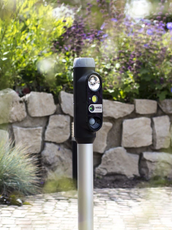 In der Abenddämmerung und im Morgengrauen kann es zu Aktivitäten des Laser Guard kommen. Das System schaltet sich im Morgengrauen automatisch an und bei eintretender Dämmerung wieder aus. Um ein unnötiges Auslösen des Laser Guard zu vermeiden sollten sich im Erfassungsbereich des Bewegungsmelders keine großen Äste oder sonstige beweglichen Pflanzen befinden. Richten Sie das Gerät nicht auf Menschen. Weisen Sie Personen in Ihrer Umgebung und vor allem Kinder auf die Arbeitsweise des Laser Guard hin. Abgesehen von der Schreckreaktion ist der Laser Guard sicher für Menschen und Tiere.