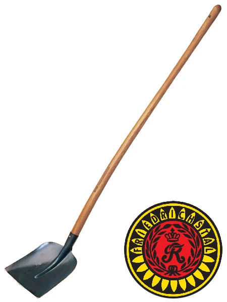 Holsteiner Schaufel zum Schippen von Sand, Kies und anderen Schüttgütern. Hochwertiger Eschenholzstiel (Länge: 135 cm), geschmiedeter Stahl, Gewicht 1900 g.