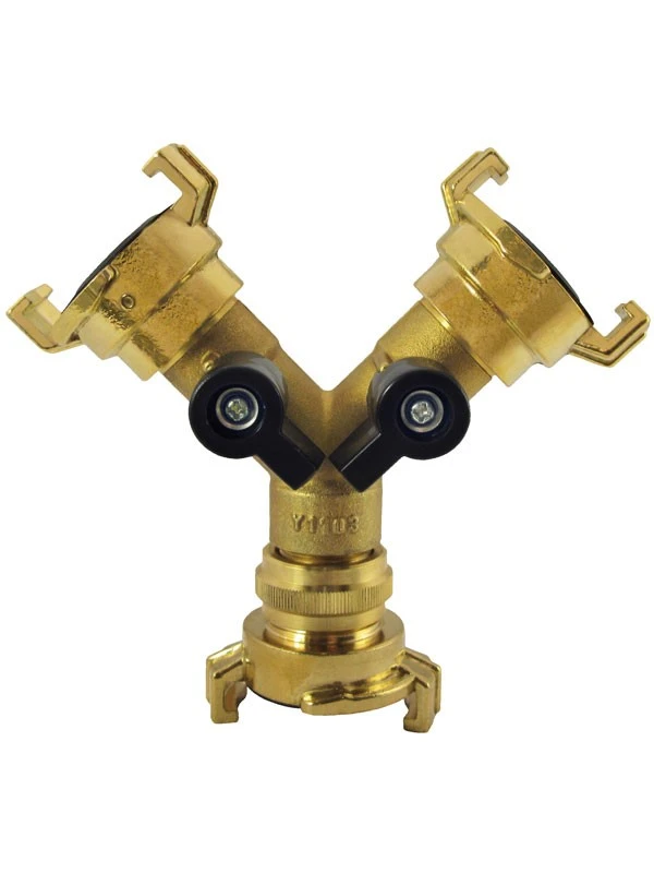 Schnellkupplung Y-Verteiler mit Absperrhahn aus Messing