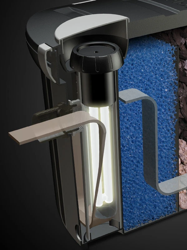 Spezielle Einbau UV-C Units für den Clear Control Druckfilter, Cross-Flow Biofill und Giant Biofil XL. Die Wirkung beruht auf ultravioletter Strahlung, die die Zellen von grünen Schwebealgen und Krankheitskeimen angreift und abtötet.