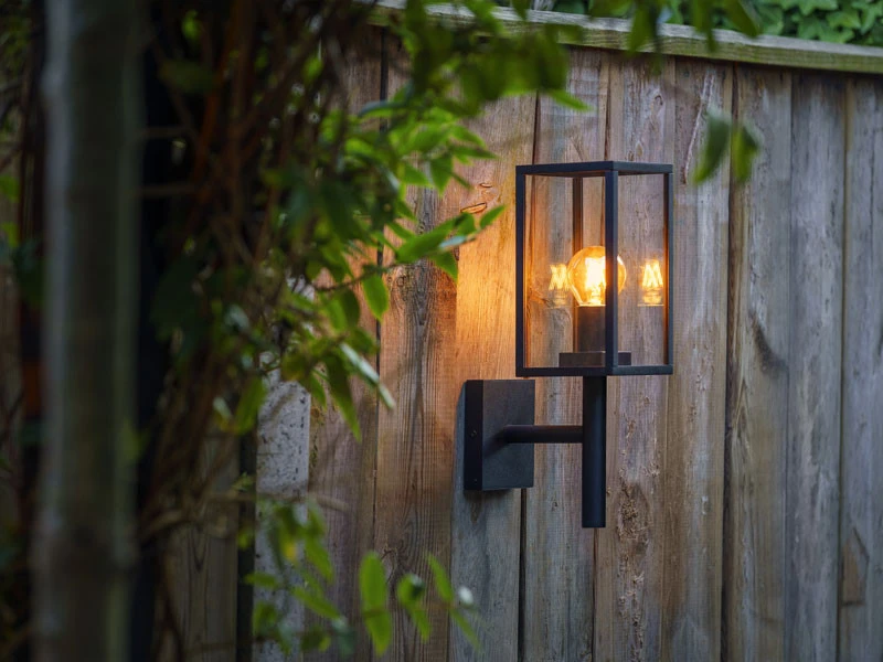 Für eine stimmungsvolle Atmosphäre sorgt diese edle Laternen-Leuchte aus Aluminium.